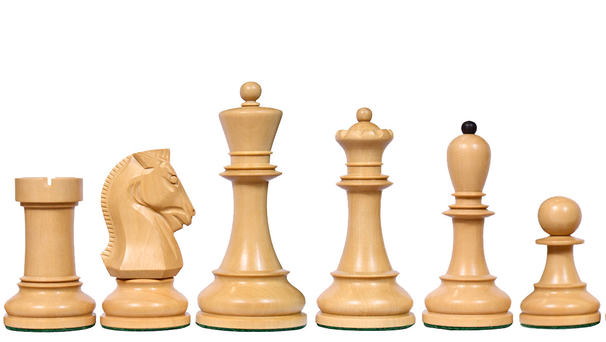 1950 Dubrovnik Bobby Fischer Reproduced Weighted Chess Pieces Set : Commissioned for the IX. Chess Olympiad in Dubrovnik, Yugoslavia, the Serbian sculptor Petar Poček crafted an exquisite set of chess pieces in 1950, featuring smooth curves, distinctive capped bishops, and elegantly unique knights unlike the conventional Staunton Elgin marbles style. These chess pieces was constructed from maple and chestnut in their natural hues which exhibited an unconventional width at the base, while adhering to the tradition of great Staunton/Jaques of London designs. Notably, the requirement for no religious symbols was strictly upheld, and a discreet metal badge within the box bore the inscription "IX. šah olimpijada 1950 Dubrovnik Jugoslavija."