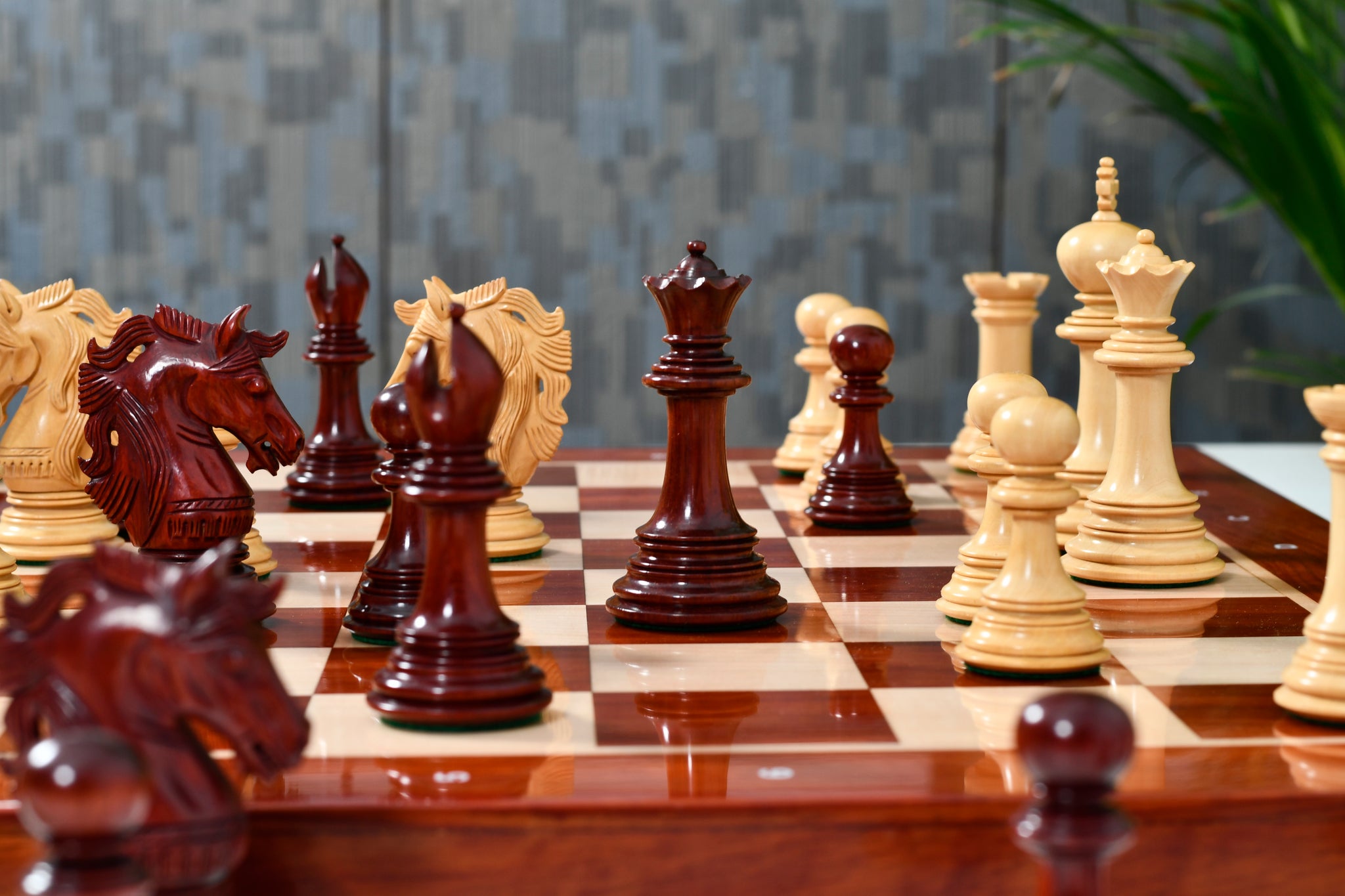 Dark chess pieces are exquisitely crafted in Bud Rosewood. Because of its richness, Bud Rosewood chess pieces are the primary choice of many chess enthusiasts. Bud Rosewood is an alluring wood and probably the most admired wood for luxury chess sets.