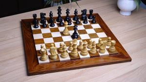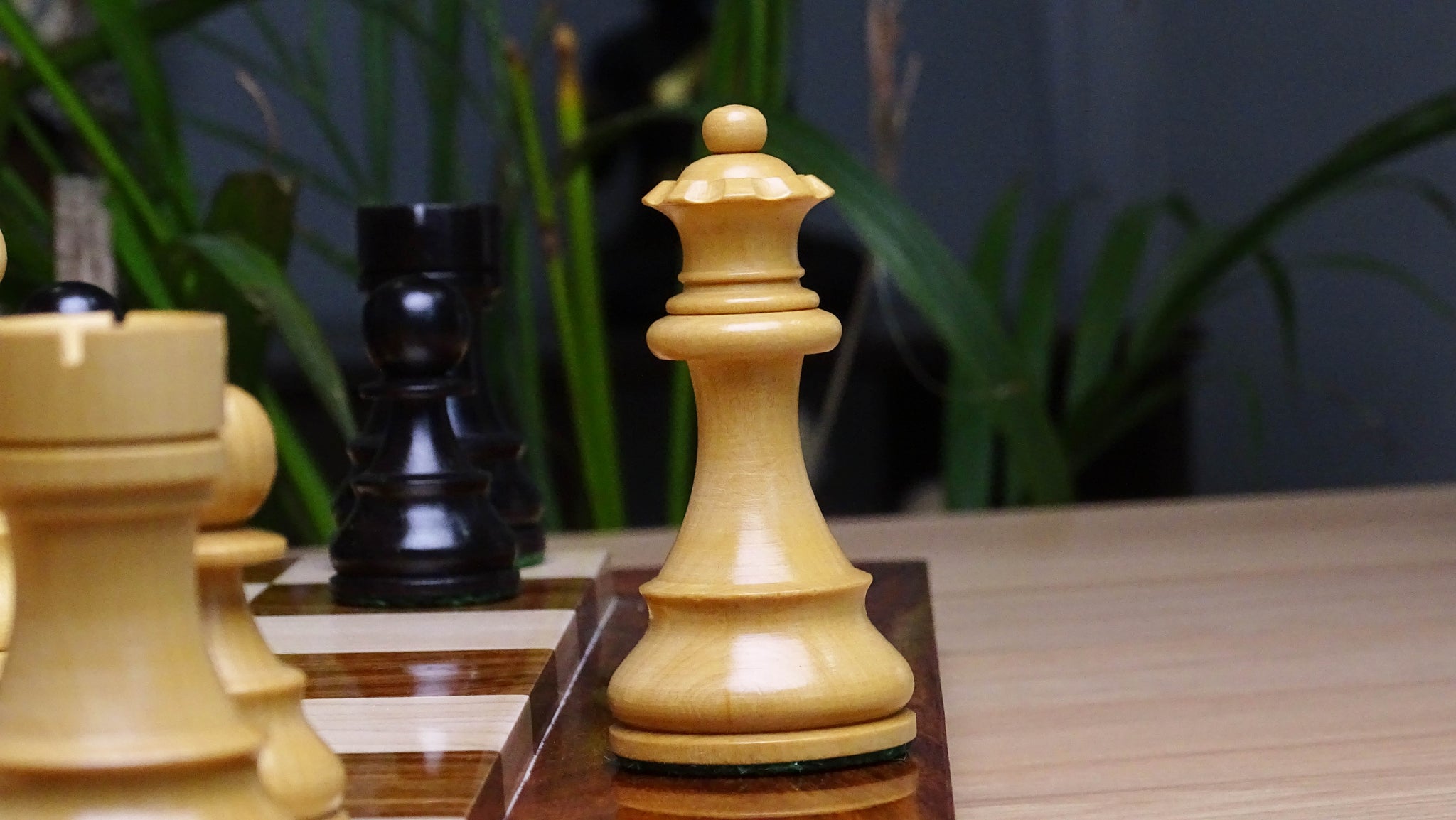 The French Lardy chess set by Indian Chess Company is a stunning reproduction of the classic design, featuring a 3.75-inch king and a solid weight of 1240 grams. Crafted with precision, this set maintains the elegance and playability of the original Lardy pieces. The weighted design ensures stability, making it ideal for serious play and collectors alike. With fine detailing and high-quality craftsmanship, this set is a tribute to the timeless French Lardy style.